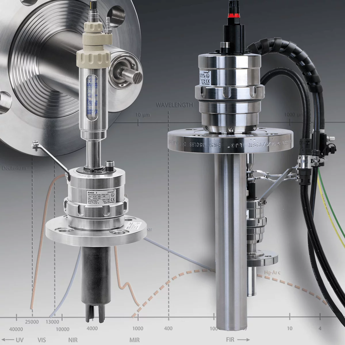 직경 12 mm의 전기 화학 원리의 센서 또는 직경 12 mm 및 12.7 mm의 광학식 센서를 위한 세라믹 챔버를 통해 씰링이 되는 피팅, 티타늄 및 Hastelloy 재질 또한 선택 가능.