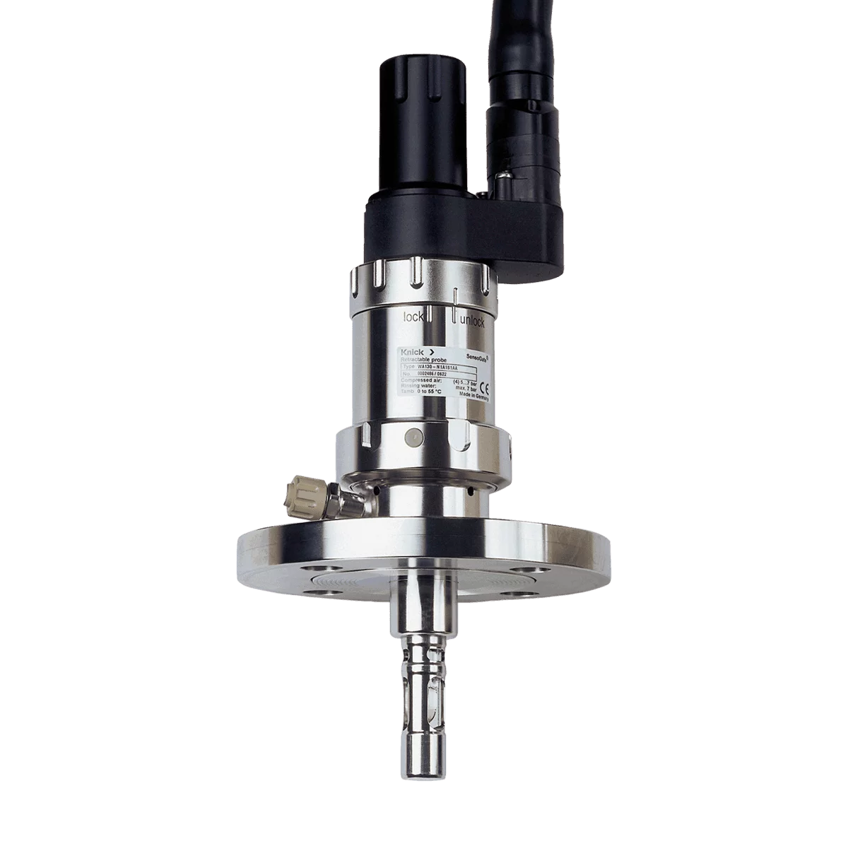 SensoGate WA 130 H는 진정한 플러그 앤드 플레이를 제공해 드립니다: 하나의 통합된 멀티 커넥터를 사용하여 세척액, 세정액 및 교정액을 비롯해 공기압 및 최종 위치 조절 기능까지 한 번에 연결시킬 수 있습니다.