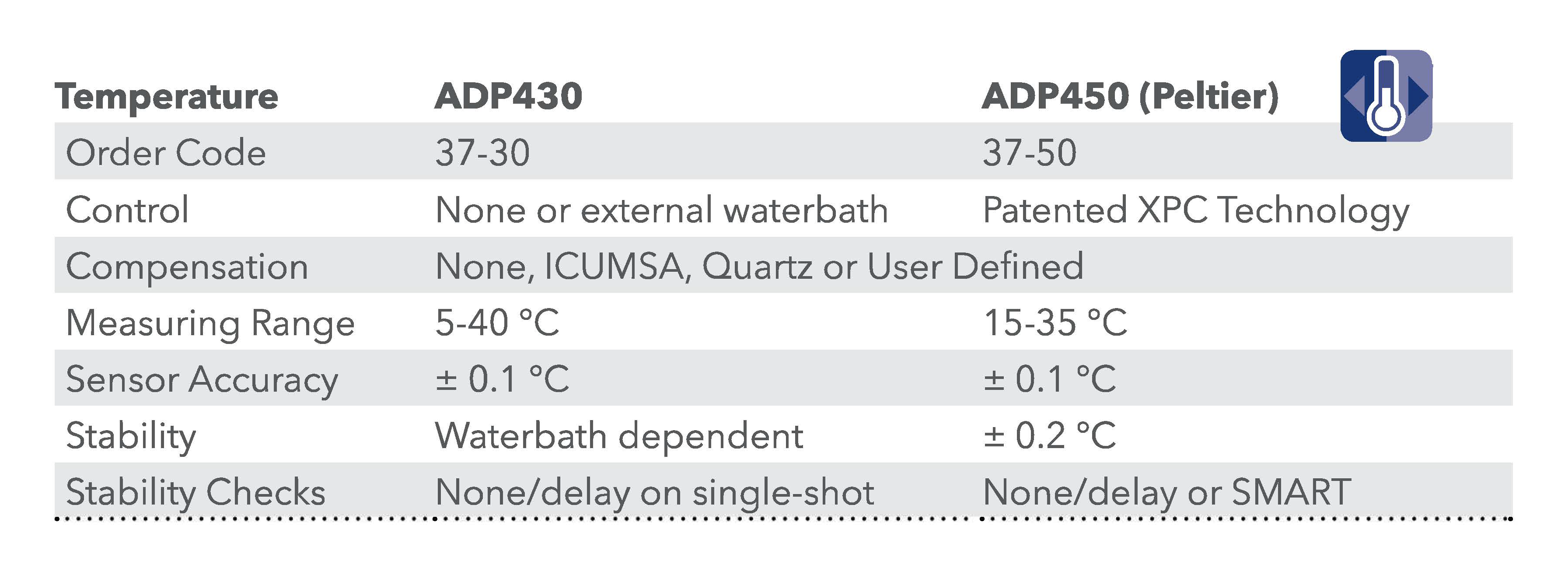 ADP400 편광계는 XPC(Xylem 의 특허받은 내부 Peltier 온도 제어 시스템)를 포함하지 않고 사용할 수 있습니다.