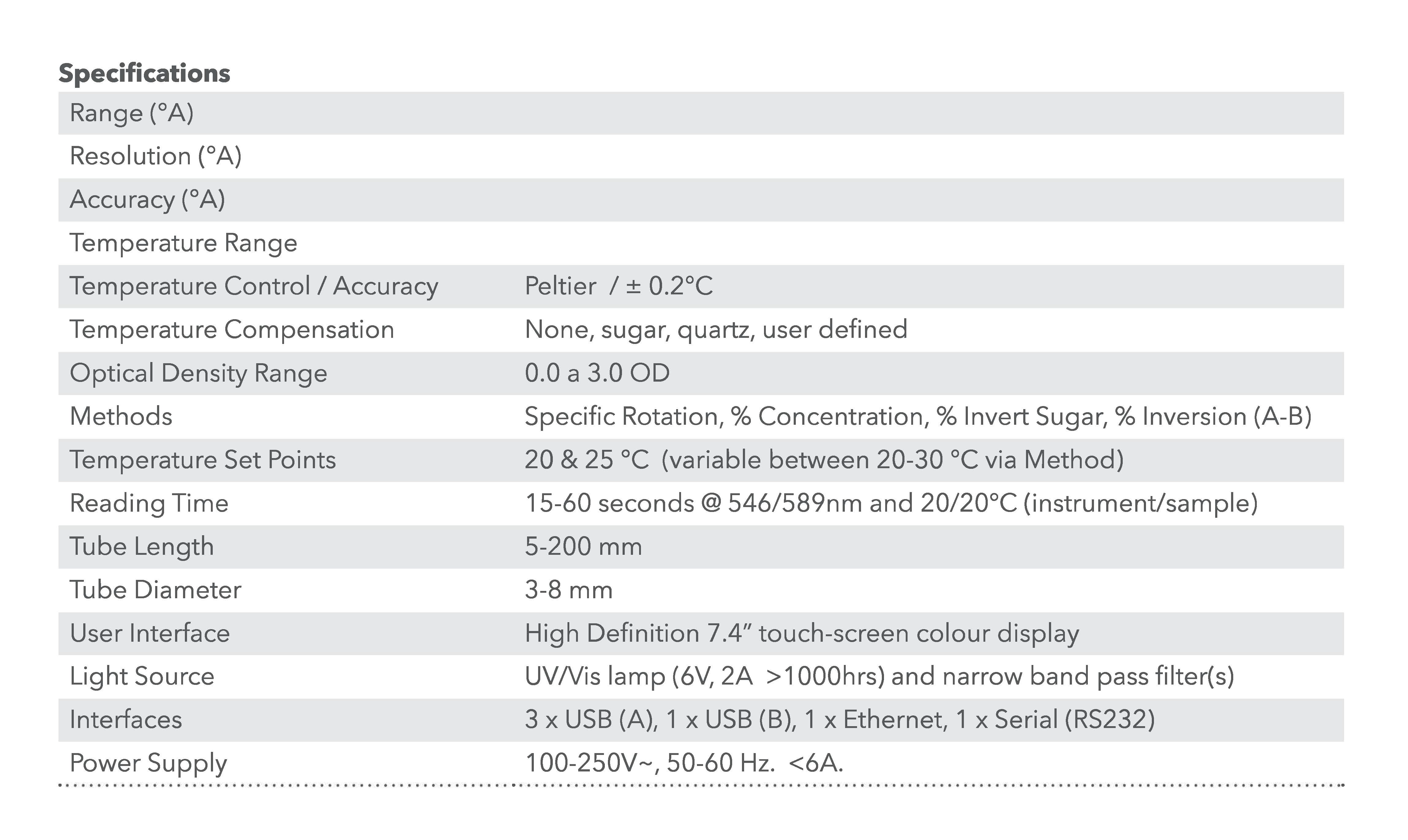 ADP600 시리즈 편광계는 유럽 및 미국 약전에 따라 각각 20 °C 와 25 °C 의 두 가지 사전 설정 작동 온도를 가지며 20 °C 에서 30 °C 와 다른 사용자 온도는 기기 사용자 인터페이스를 통해 구성할 수 있습니다.