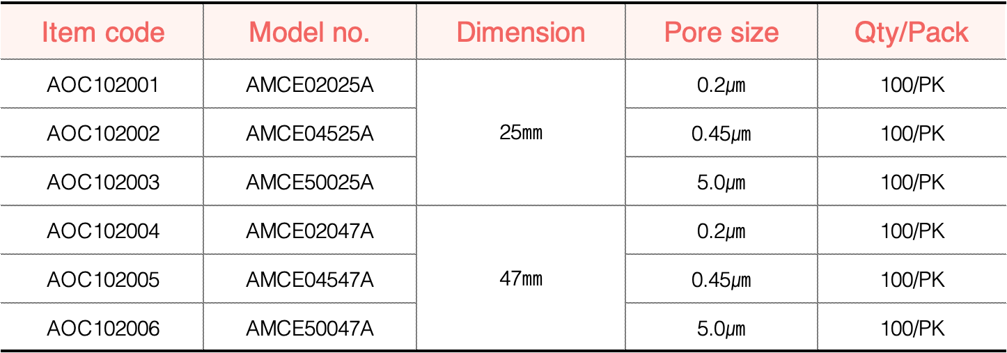 • Cellulose Nitrate와 Cellulose Acetate가 혼합된 Filter 재질